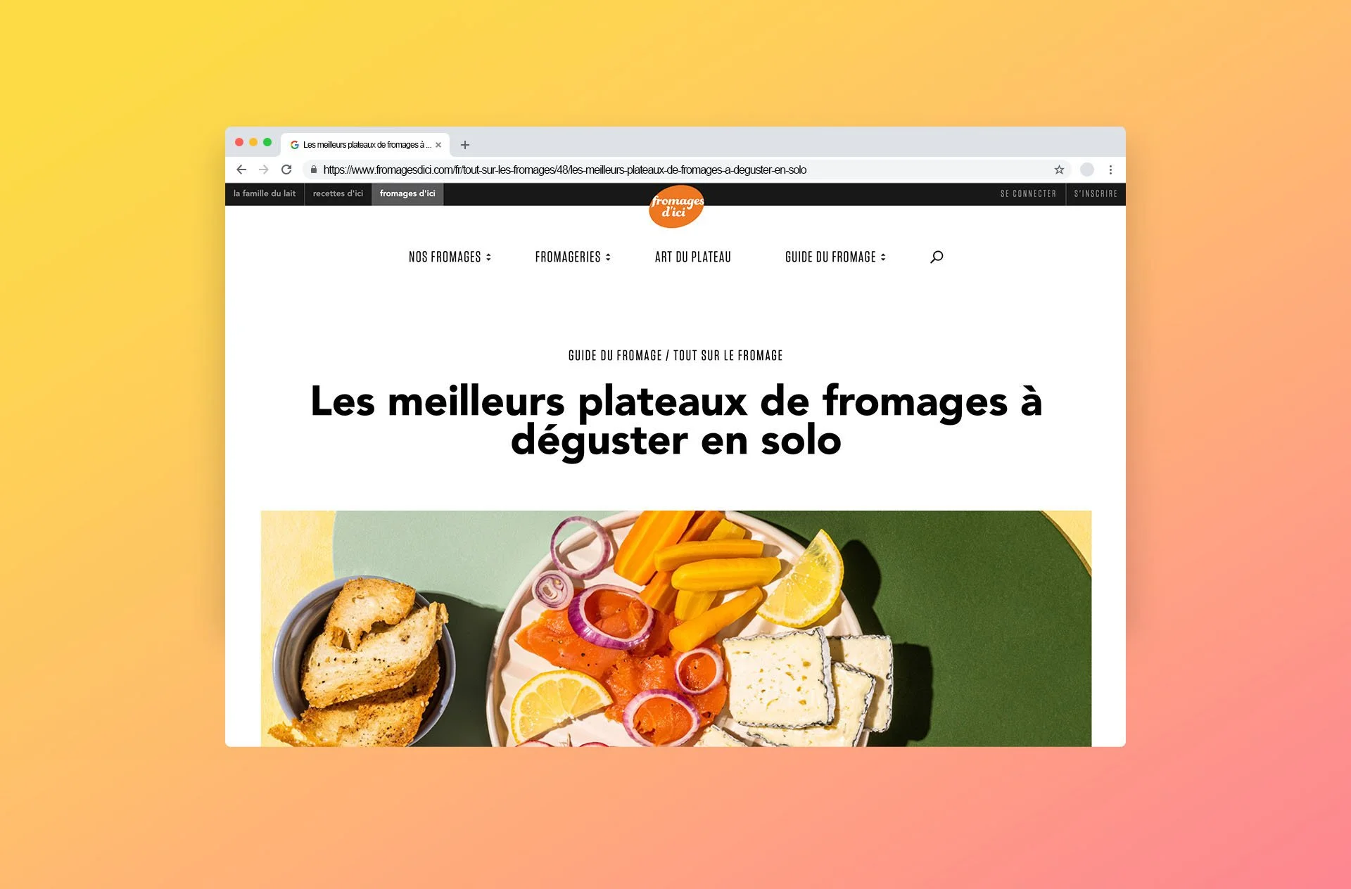 Bright-colored cheese boards made for solo eaters for Fromages d’ici.